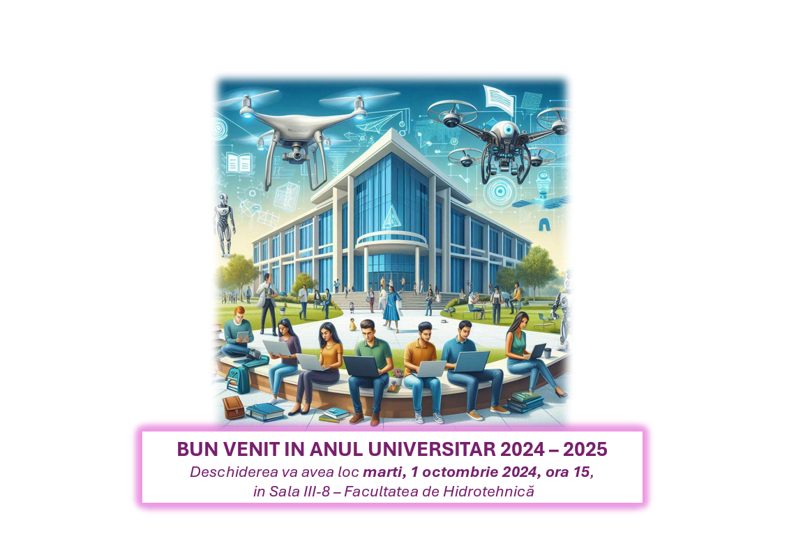 MARȚI, 24 Septembrie 2024, la ora 15:00, avea loc susţinerea publică a tezei de doctorat, elaborată de student – doctorand ing. Traian GHIBUȘ, cu titlu: ”CUANTIFICAREA HIDRAULICĂ A MEDIILOR NESATURATE ZONA URBANĂ”